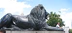 ライオンの前足のところで 大人の男性が記念写真を撮っています。 ライオン像はこんなにも大きい! 大人も子供もライオンにまたがって写真を撮っていました。 |