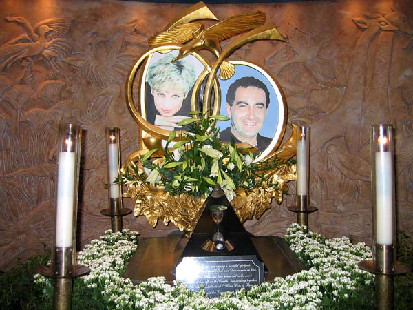 ハロッズの中にダイアナ妃を しのぶコーナーがありました。 美しい笑顔が悲しい・・・。 このコーナーでは、 人が絶えることは ありませんでした。 |
