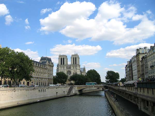 セーヌ川からシテ島に建つノートルダム大聖堂を望む