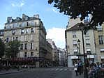 サンジェルマンデプレ教会の 右隣の街並み このあたりはディオールなどの 高級ブランドのお店が並ぶ |
