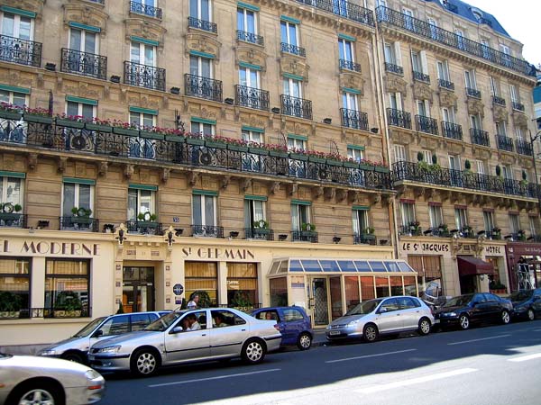| 2時30分、ホテルに着きました。 カルチェ・ラタンにあるサンジェルマンホテルです。 私が飼っていたプードルの名前がサンジェルだったので、 名前で選びました。もちろん治安と利便性も考慮した上です。 |
