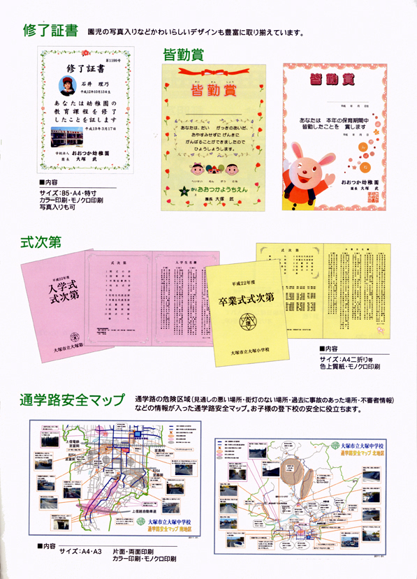 修了証書 式次第 通学路安全マップ 等(デザインも豊富に取り揃えております) こちら