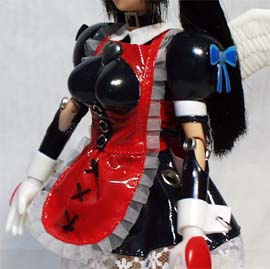|  | レースの部分は、市販品の方がさすがに綺麗じゃがな、胸のアーマーが前のエプロンに、くっついているように見えるのが残念じゃ! 正面からの見た目はオリジナルそっくりじゃのぉ。 |