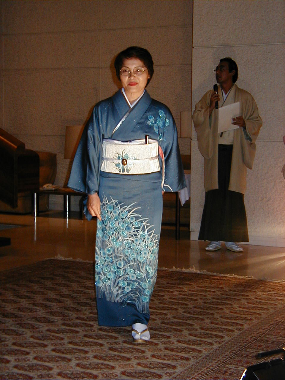 平成15年6月、藤林徳扇さんの事務所まで、ベルギーの大使が来られて「藤林徳扇」の絵画や着物を見学にお越しになられたときに作品を着てのショーをされたときに、次女がその一躍を似ないショーに出演し大使ご夫妻と大使館員の方々と食事と通訳をさせていただきました。