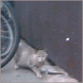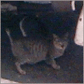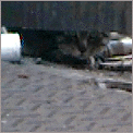 0128 発見。カメラかまえる。 照準セット。猫、逃走。 追う。きる! しっぽのみ。残念。 |