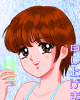 | オ リジナルキャラです。名前はありません m(_ _)m。いつも版権もののアニメキャラばかり描いていたので、そろそろオリジナルで、課題だった髪の毛の表現にも挑戦しようと思いました。髪の毛は、今ま では、セル画塗りのように、一色に塗った後、てかりや影を入れていました(私は、それでも未熟な描写だった)。さらさらした感じを出すために1本、1本表 現したかったのですが、そこまで及ばず、とりあえず簡単な手法を考えました。髪の塗りを均一に見せないよう、ノイズを加えてざらざら感を出し(さらさら感 ではない(^_^;))、輝度を変えて明暗を付けました(元の絵は、960X1280ピクセル)。 | ||||
