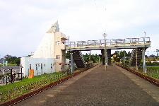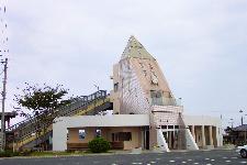 鹿島灘、北浦を背景にヨットのメーンマストを模し夜はライトアップされるおしゃれな駅。