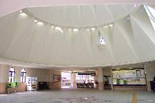 森の中の駅舎をイメージして造られ駅構内無断差化などバリアフリーに配慮された斬新な駅。