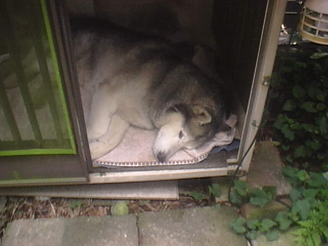 最初の発病後、家の周りを回りすぎてぐったりと小屋で熟睡