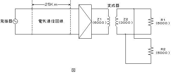 図において、発振器の出力インピーダンス及び電気通信回線のインピーダンスがそれぞれ340[KΩ]で整合し、