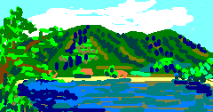キャンプサイトからの文覚池と諸木山 (1996.8.16.)