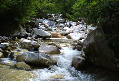 明るい沢沿いを行く