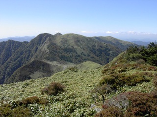 | 三嶺山頂から太平洋 | 山頂付近からヒュッテ |
