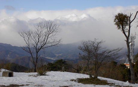 再び青空が広がった。山頂がよく見える。西に羽束山や大船山、剣尾山あたりは雪雲が忍び寄って