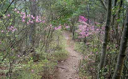 ツツジ咲き並ぶ山道