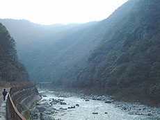 武庫川渓谷 マキノ瀬辺り 1998.3.14. この景色をダムで沈めるのは もったいない。 |