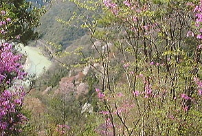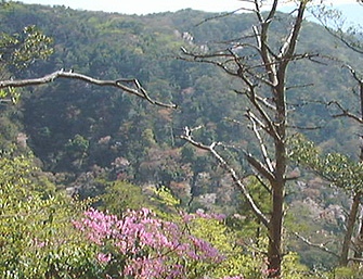左に武庫川渓谷を見下ろす約280mコルを訪ねる。2週間前と同じ程度のミツバツツジ。