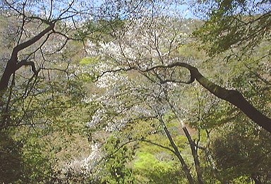 水上勉の小説「櫻守」(さくらもり)の題材となった「桜の園」が西麓にある。
