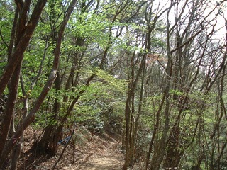 素晴らしい雑木林の谷になった。ちょうど岩茸山の真南辺りと思われる。芽吹きが素晴らしい。
