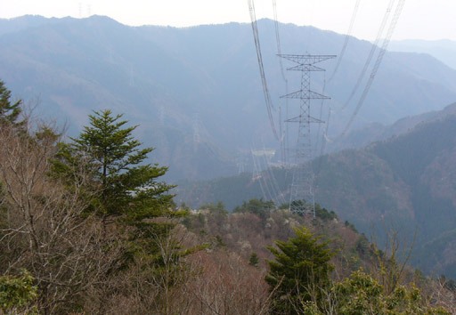 沢から高く離れ、水のない谷を詰めて尾根上の峠にのる。周りは雑木林。その木々の先に山影遙か。