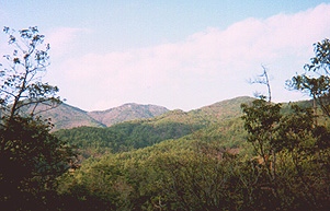 目指す山頂はヤブの海の遥か遠くに見えます。このヤブに気圧され、かつ、前方で