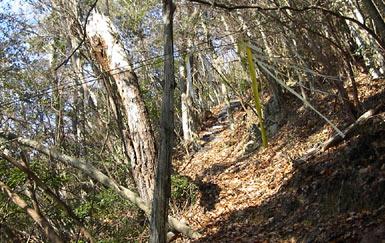 ここから北上する。踏み跡は判るが、人通りが少ないのだろう枝がはびこって、鹿が通る程度の