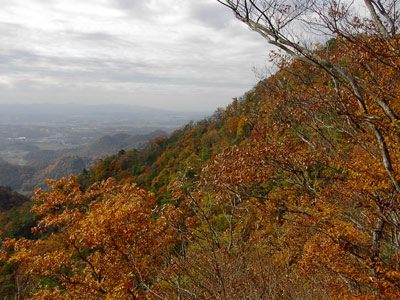 峠の手前で再び雑木林となり、行者山までがさらに急登だった。高度が上がると葉の落ちた枝越しに