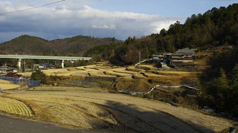 つつじが丘手前で川西篠山線のバイパス道から外れ、肝川の谷に入る。