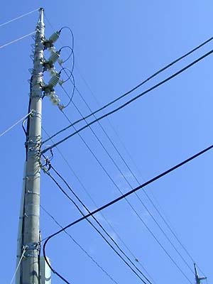 >>私がこの場所を発見したのは、12年も前の話です。 >>たまたま夏休みの自転車旅行で通りかかったとき、変わった電柱を見つけ、 >>気にとめてはいたのですが、当時いっしょにきていた友人たちに、 >>あの電線が気になるとは言えませんでした。
