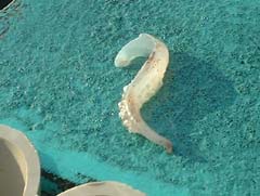 8時半頃、やっとアタリをモノにし、本日の1尾目が上がる。小さめのメスヤリイカのようだ。そういえば、今日はこれまで上がるのはメスばかり。オスも釣れて来ないと数は伸びないのだ。