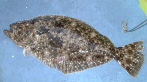9時頃、今度もうまくアワセることが出来て巻き上げ開始。今までのヒラメよりやや重量感がある。これも無事にタモに収まった1.1kgの本命。いやいや、いきなり今までの自己記録の倍の釣果である。まぁ、今までの記録自体、低いものであったかもしれないが・・・。