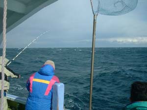 「左舷で上がったよ」という船長のアナウンスがある。キロ級前後が2尾左舷であがったようだ。この流しの潮先は右舷なのに、左舷が先に上げるという不思議な現象である。今日は必ずしも潮先有利というわけではないのであろうか。