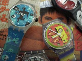 ジャガー・ル・クルトやロレックスのアンティークもいいけど、スウォッチの「ミュージコール」もおもしろい。デザインもユニークだけど、音が出るところがいいよね。でもね、最近は音も似たようなタイプばっかりで残念。スウォッチ全般に言えることだけど、デザインのアイデアが少し無理だったり、すぐに飽きちゃう感じで、すっかりGショックに負けてない? オートマのスケルトンは値段の割にはGOODだったけど…。デパートやショップでも最近古いタイプを「レアモデル」とかいって売っていたり、よっぽど人気が無くなったのかなと思っちゃうよ。