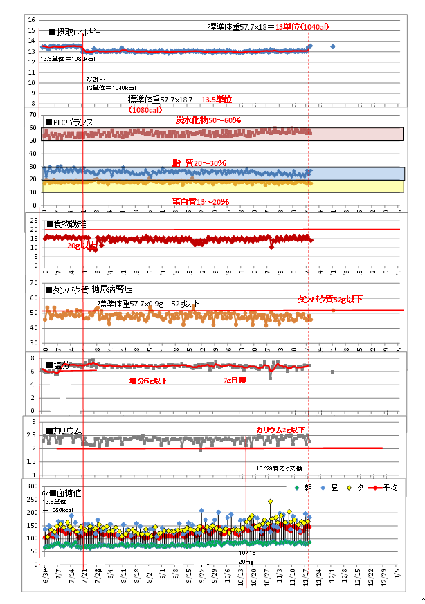 2019/10~糖尿病腎症第2期でタンパク質制限も加わって
