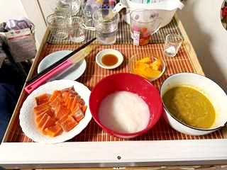 1/7~退院後 全粥+ミキサー食+とろみ→2月~キザミ食+とろみ