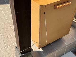 セキュリティワイヤーはガレージの柱に通しました。