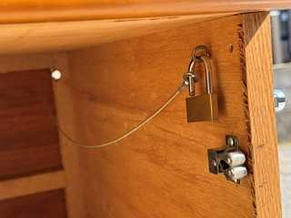 ボックスの中でワイヤーを南京錠でロックします。