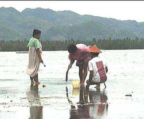 干潟が生物の貴重な生息の場であり、マングローブ林がその基盤をつくっていることを痛感する風景だった。そこでは、漁民たちは潮干狩りをしたり、沖合で、マングローブの植林を続けたりしていた。