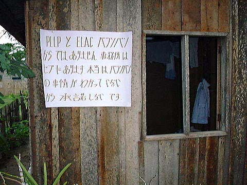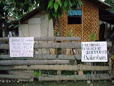 しかし、どうもそれは、本当に私たち調査団を歓迎しているものとは思われなかった。その言葉に続いて「ELAC/PLLP go home」といった文字が書かれていた。ELACは、私たちをセブへと招待したセブの環境保護団体である、環境法律支援センターのこと。それを批判していることを私たちに示すのが意図のようだ。