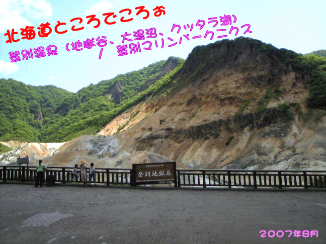 | 今回は、あの、温泉地で有名な登別温泉です。 2007年の夏休みの家族旅行に行ってきました。 札幌から車で2時間・・・実に手ごろな距離に 北海道でも有数の名湯があります。 ご注意:2007年8月の旅行時の情報ですので、 今後変更等有るかもしれませんので、 ご注意ください。 |