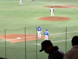 8回表、今日当たっている先頭の小笠原が四球で出塁。代打谷の犠打で二塁に進むと、小笠原の代走に石井琢を起用。しかし、今岡、清水将が凡退して何ごとも起こらず。