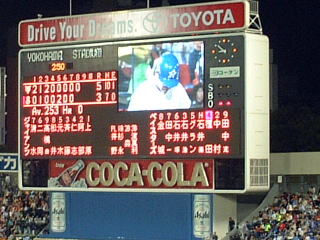 YBの反撃はここまで。木塚、斎藤の勝ちパターンのリレーを見せるが、打線が奮起せず。今日昇格した石井義が今季初安打を放ったのが目立った程度。これでYBは7勝20敗。5倍してみると35勝100敗。100敗を達成可能なペースといえます。森監督、(黒江、森繁ともども)そろそろお休みになってはいかがでしょうか。
