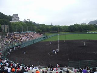 - コメント: JR明石駅のすぐ北側、明石公園の中にあります。明石公園は明石城の城址公園で、球場からも城が見えます。