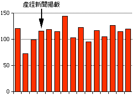 '97.2.3の産経新聞に、この「ズバリ!! 見てもらえるHPの作り方」のことが掲載されました。しかし、アクセス数は全く増えません。新聞という、雑誌より遥かにマスの大きな媒体への掲載によりアクセス数が増えることを私自身期待したのですが、全くダメでした。