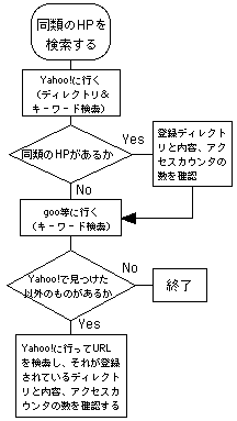 多くの場合、初めての人がホームページに訪れる時は、サーチエンジン(特にYahoo!)のディレクトリを辿りながらやってきます。このことはすでに本編のYahoo!の威力と落とし穴で述べましたし、実際Yahoo!に行って見ていただければおわかりになると思いますが、階層が深くなるに従ってアクセス数が減少する傾向にあります(あくまでも一般則で例外もあります)。従って、せっかくすばらしいホームページを作ったとしても変なディレクトリに登録されればアクセス数が全く増えないことになります。こんな悲惨な結果にならないためにも、自分が登録されるであろうディレクトリをあらかじめ確認しておく必要があります。