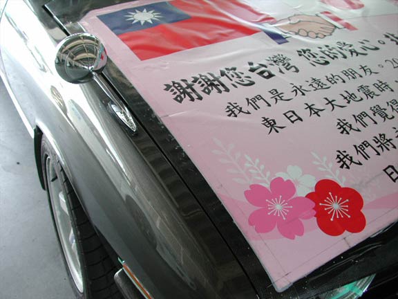 こちらは東日本大震災に関し、台湾に御礼を述べている117クーペ。毎回欠かさず参加している。この姿のまま台湾でパレード走行したそうだ。