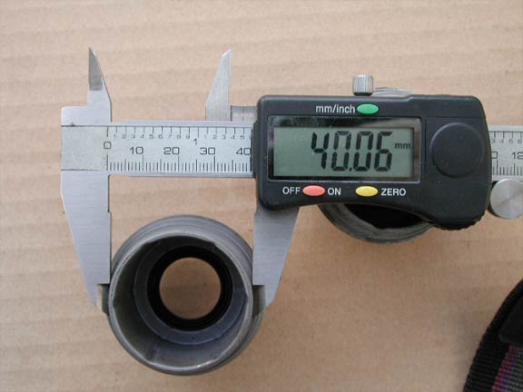 内径に違いはあるのだろうか。キャップ内部には凹みがあるため正確な測定がちょっと難しい。そこで内部構成部品の一部を入れてみた。写真左が未対策品。双方ともガタなどなかったことから、内径は双方とも同じと判断する。