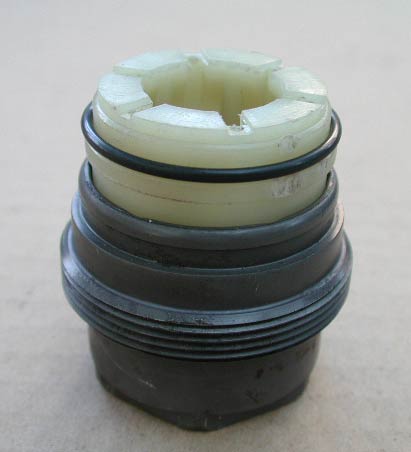 内径を比較する。キャップ内部には凹みがあるため正確な測定がちょっと難しい。そこで内部構成部品の一部を入れてみた。写真左がシングルカムターボ、右がツインカムターボ。双方ともガタなどなかったことから、内径は双方とも同じと判断する。