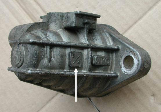 シングルカムターボ(C系のワークスieやワゴンRターボ)のマスターバックは、ブレーキフルードが漏れないことで知られている。ではツインカムターボ(AZ−1)と何が違うのか。それはマスターシリンダーにあるピストンの直径が異なっている点だ。シングルカムターボの方が細い。そのことはマスターシリンダー表面に刻印されている。下の写真はシングルカムターボのもの。3/4という表示がある。ツインカムターボなら13/16という表示になる。ちなみに単位はインチだ。