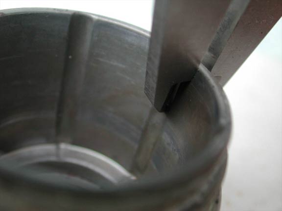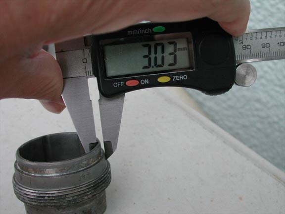 キャップにクラックが入らないということは、例の凹みに違いがあり全体的な肉厚が異なっているということなのだろうか。少々計測しにくいが、凹みとクラックの間の肉厚を測定した。下の写真は測定箇所を示したもの。